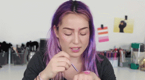 2、然后我们用细头刷子点涂在眼尾位置,不用太过密集。留出适当的空白。