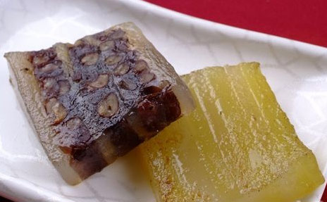 说明:这是明代宫廷食疗验方,出自《鲁府禁方》。茯苓作用见前"茯苓糕"。《神农本草经》将山药列为上品,说它"益气力,长肌肉。久服,耳目聪明,轻身,不饥延年。