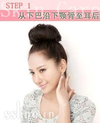 先用手把按摩油轻轻涂抹在下巴沿下颚骨至耳后部位,慢慢打圈,使按摩油布满整个按摩部位。然后用你的食指指腹,从下巴沿下颚骨轻轻按压至耳后发际处,再迂回按压,连续重复3次。