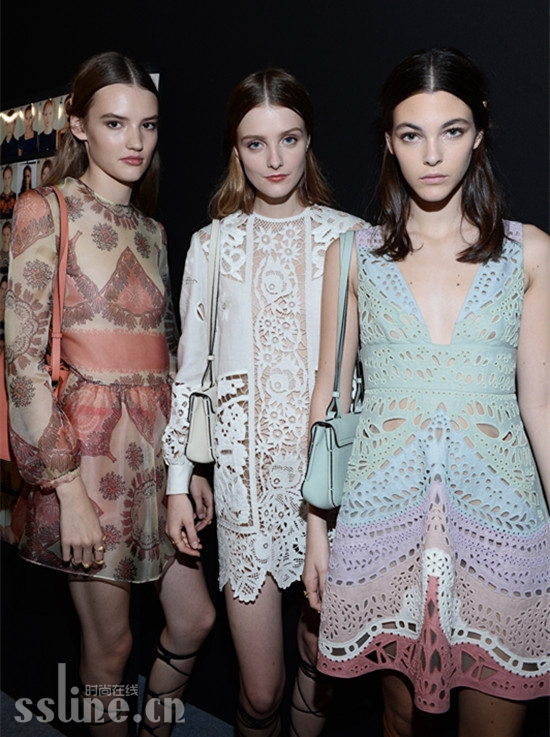 设计师以异采宣示VALENTINO的设计新理念:厘士配搭窝钉、外套款式连身裙采用硬朗线条、还有整体的线条构造,全都出自同一方程式,追求循环不息的隽永境界。木跟鞋履和珠宝是系列的美丽句号,透过不同色彩营造美感,标立个人风格。
