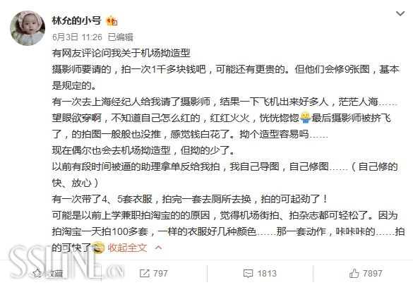 说到明星带货这件事,大多数都是在机场街拍中完成的,看似是随意的摆拍以及各类私服,其实里面另有玄机。近日,女明星林允在私人微博上透露,其实她的机场时尚照是花钱请摄影师拍的,拍一次约人民币1000元。