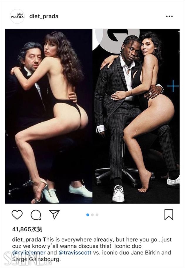 可以看到三张照片里两对夫妻的造型、动作确实是十分相似的,但与其说是模仿不如说是 “致敬” ,因为 Serge Gainsbourg 的这组照片在当时是为了体现浪漫而性感的艺术美学,同时也是 “炫耀” 了一番两人的爱情,而这样的 “先例” 其实与 Travis Scott 和 Kylie Jenner 这对夫妻也很相似,一个是福布斯榜前三的成功企业家,一个是当下火热的说唱歌手之一,所以这对夫妻注定就是不平凡的,不是吗?