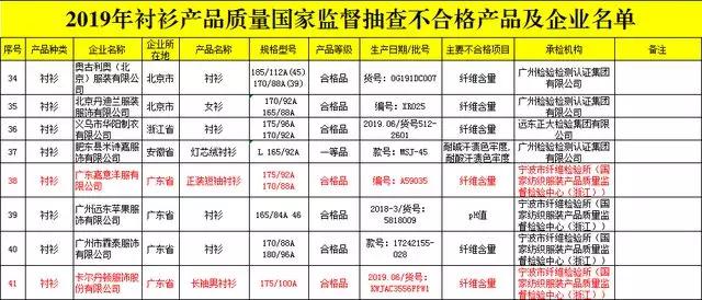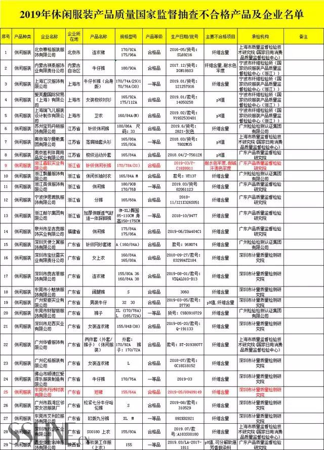 附件:休闲服装以及衬衫不合格产品及企业名单
