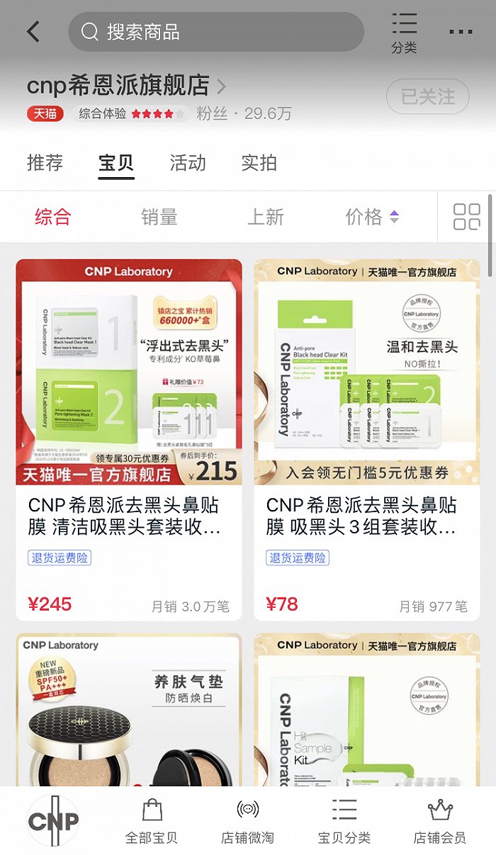 无独有偶,韩国另一大化妆品巨头“LG生活健康”也在积极布局中国药妆市场,LG生活健康旗下医美品牌“CNP希恩派”(CNP Laboratory)已经在天猫国际开设旗舰店。
