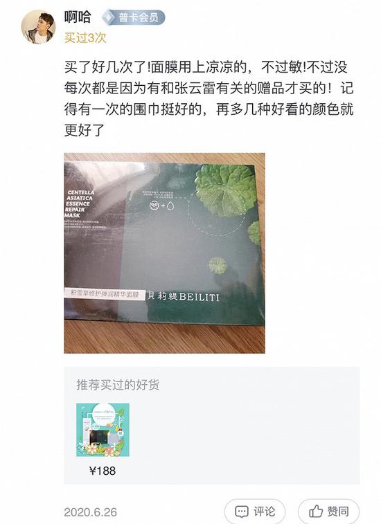 值得注意的是,并不是所有张云雷的所有粉丝都愿意购买贝莉缇的产品,不少粉丝对贝莉缇品牌持质疑态度。