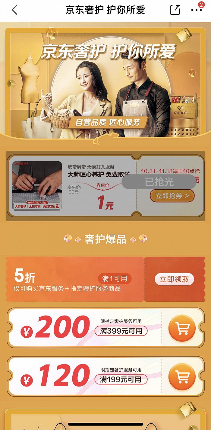 京东继“专车”、“帅哥”、“白手套”组成的“京尊达”配送服务后,又上线“京东奢护”,可以提供皮具清洗、钟表维护、定制及改衣等服务。虽然天猫奢品也推出了类似服务,但仅局限于部分品牌,且由品牌负责提供售后服务。